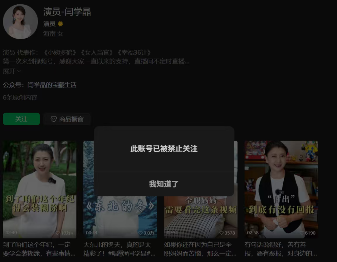 1月10日,因直播中言论被质疑为“哭穷”的演员闫学晶多平台账号被禁止关注。