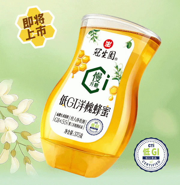 冠生园创始于1915年,作为中国蜂产品行业龙头企业、蜂蜜行业领军品牌,通过ISO9001、HACCP、GMP等多项认证,依托强大养蜂网络与高效供应链体系,保障产品规模化与高品质输出。此次推出的低GI洋槐蜂蜜,经北京华测食农认证服务有限公司认证,血糖生成指数(GI值)为47,符合GI≤55的低GI食品标准。