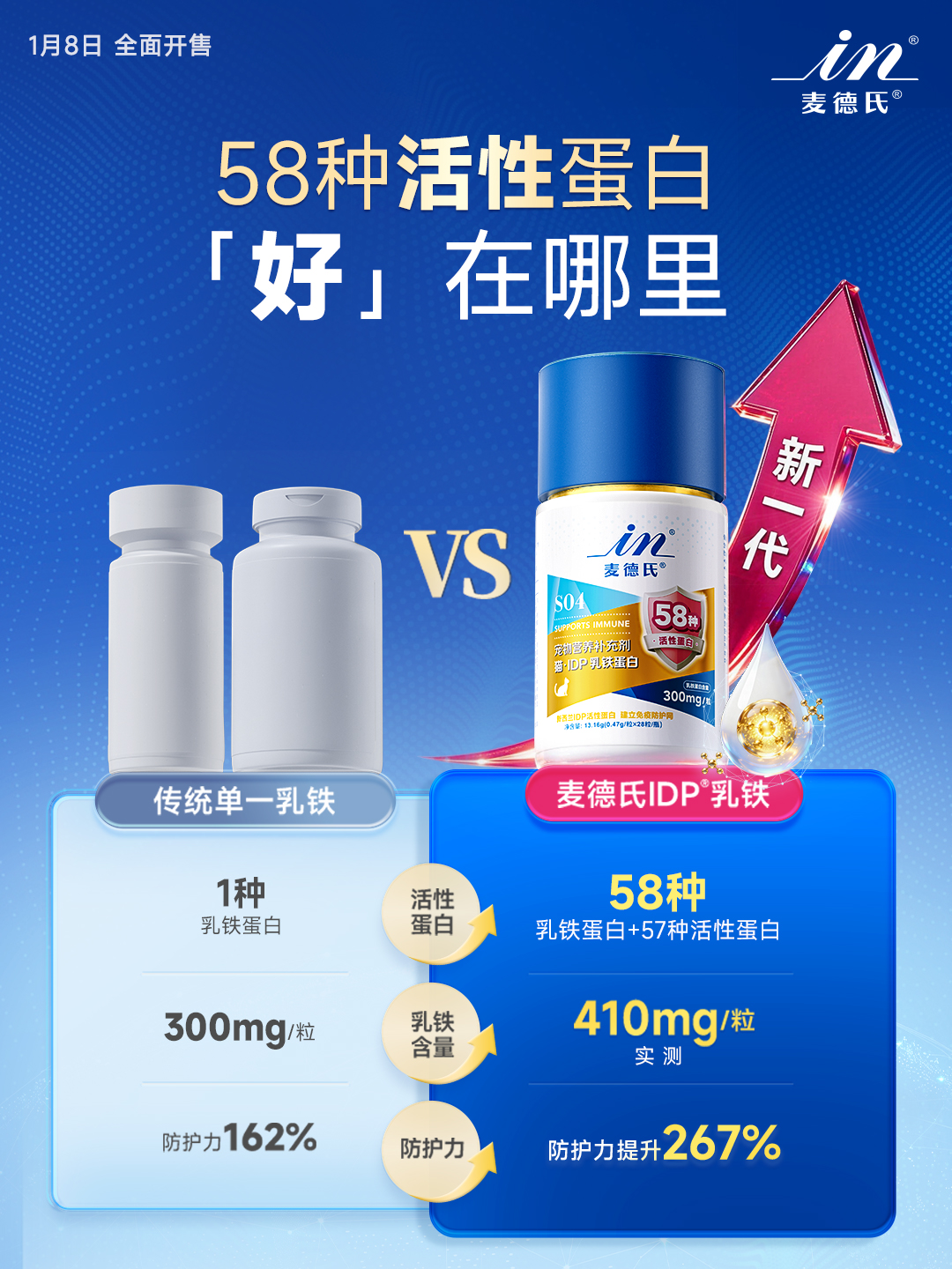 2026年1月初,宠物营养健康品牌麦德氏正式推出新一代IDP®乳铁蛋白。“新一代”又“新”在哪里呢?传统乳铁蛋白只有单一活性蛋白,麦德氏IDP®乳铁蛋白有58种活性蛋白比传统乳铁多57种,一粒顶2粒效果。除此之外,有45项临床实证新一代IDP®乳铁蛋白在宠物抗炎、抗菌、抗病毒等综合防护力14天提升267%,极大地保护崽崽少生病。最后就是,新一代IDP®乳铁不仅每粒实测乳铁含量高达410mg还搭配8联益生菌调理肠道菌群,免疫+肠道双在线,全方位筑牢宠物健康防线!此次新品上市不仅是麦德氏在功能营养领域的一次重要突破,更是其对科学养宠理念的又一次深度践行。