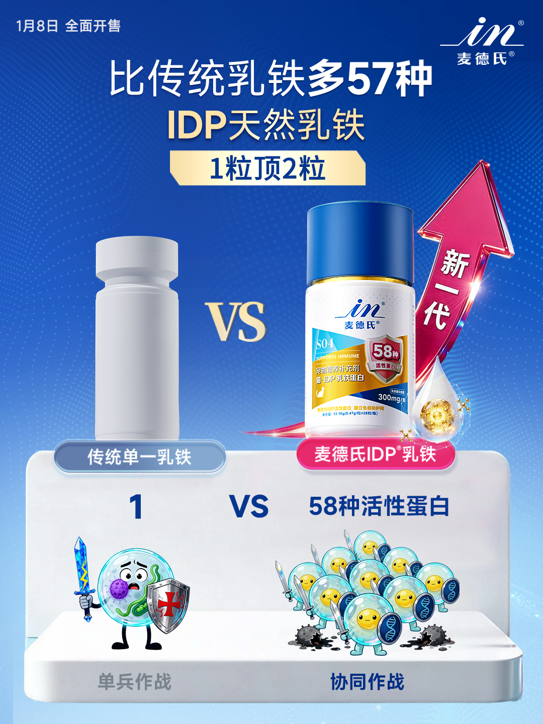 这不仅在成分数量上实现跃升,更在功能机制上构建起协同作战体系。IDP®乳铁蛋白不仅能发挥传统乳铁蛋白的抗菌、抗病毒作用,还可激活免疫系统,刺激干扰素分泌、增强NK细胞活性,直接清除被病毒感染的细胞,从而在抗病毒、抗炎、免疫激活等多方面形成合力。这种多蛋白协同模式如同一支训练有素的“特种部队”,应对复杂健康环境时更具系统性与有效性。