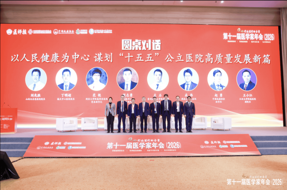 圆桌对话环节,在山西白求恩医院院长刘先胜的主持下,北京航天中心医院院长丁明超、上海市同济大学附属同济医院党委副书记花艳、中国中医科学院望京医院党委书记李浩、河北医科大学第三附属医院院长侯志勇、贵州医科大学附属医院院长左石、湖南省人民医院副院长成伟、石家庄市人民医院党委书记瞿长宝、中国抗癌协会秘书长赵勇、江汉大学附属医院副院长王小江,围绕“以人民健康为中心 谋划‘十五五’公立医院高质量发展新篇”主题展开深入探讨。