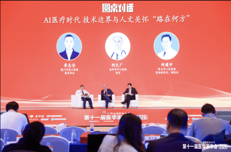 在厦门市第三医院党委书记李志安主持下,益阳市中心医院院长刘文广、无锡市人民医院院长顾晓峰、山东大学齐鲁第二医院副院长靳斌、萍乡市人民医院党委副书记、副院长何建中,多维度展开分享,从技术应用层面,探讨AI技术在临床诊断、治疗以及护理等环节的应用,以及如何避免技术门槛带来的医疗风险;人文关怀层面,聚焦AI成为医疗服务重要载体时,如何守护患者沟通的温度,平衡技术便捷与患者情感需求;行业发展层面,深入分析医院管理者如何构建技术加人文的双轮驱动医疗体系。