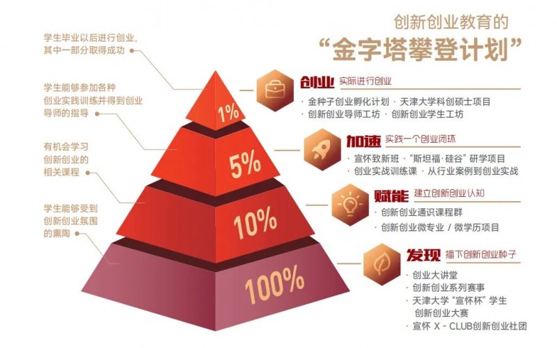 •100%分为熏陶:坚持走学生路线,从学生中来,到学生中去,将创新创业氛围的营造从天津大学内部延伸至天津的高校;
