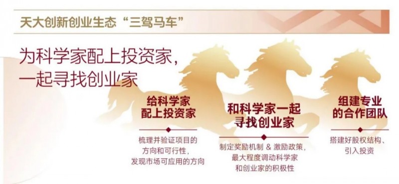 基于此,“为科学家配上投资家,一起寻找创业家”的创新创业生态“三驾马车”模式应运而生。