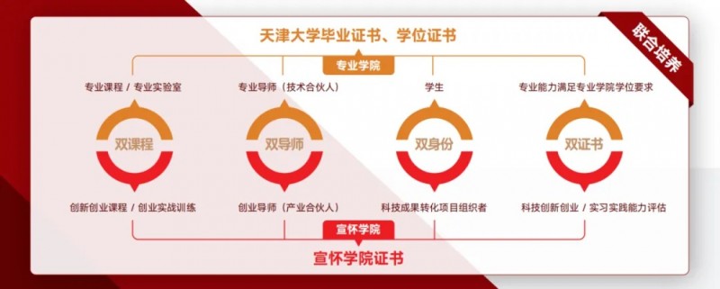 为加速推进科技成果转化,天津大学宣怀学院首创“科创硕士”项目,实行“双课程、双导师、双身份、双证书”的联合培养模式。学生既是科研者,也是创业者,通过双导师的指导,在科研与创业之间找到平衡点。