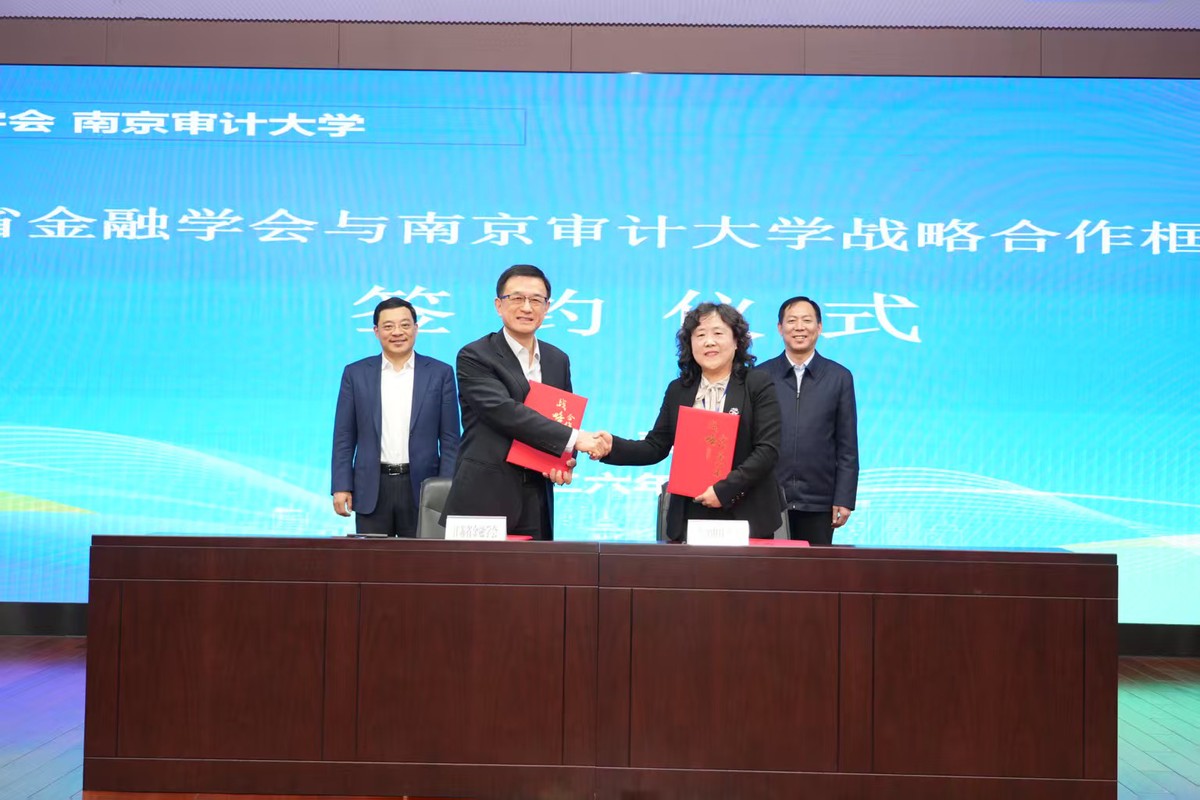 会上,江苏省金融学会与南京审计大学签署了战略合作框架协议。双方将以服务江苏金融强省建设为目标,围绕科研与学科建设、人才培养与评价、平台建设与学术交流、实践与人才交流四方面深化合作,为专业委员会后续发展奠定坚实基础。