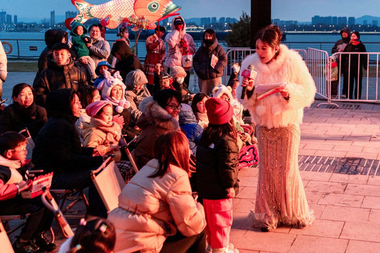 下关滨江这个融合自然资源和城市便利性的都市亲水微度假景区,通过市集+互动+表演,在江边构建出好看、好逛、好玩的活力场。从中山码头前与百年建筑温情同框的巨型爱心艺术装置,到欢乐舞台绕树一圈的爱心环;从汇聚天南地北风味的“新动市集”,到趣味性十足的轻量化互动;从“蓝色雨乐队”在江风中的现场演唱,到主舞台大屏变身“全民游戏厅”……市民与游客体验到有别于传统商圈、富有质感的新年仪式感。