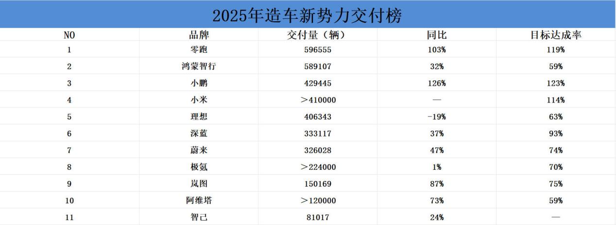 回首2025年,造车新势力榜单的剧烈变动背后,是市场从规模扩张向高质量发展的必然转型。全域自研的技术实力、精准的市场定位、符合需求的产品迭代,成为品牌突围的重要因素,而未能跟上市场变化的品牌则逐渐掉队。2026年,国补新政的实施将进一步加速行业洗牌,主流价位市场的竞争将更加激烈,唯有持续创造用户价值、构建核心技术壁垒的品牌,才能在这场变革中站稳脚跟。