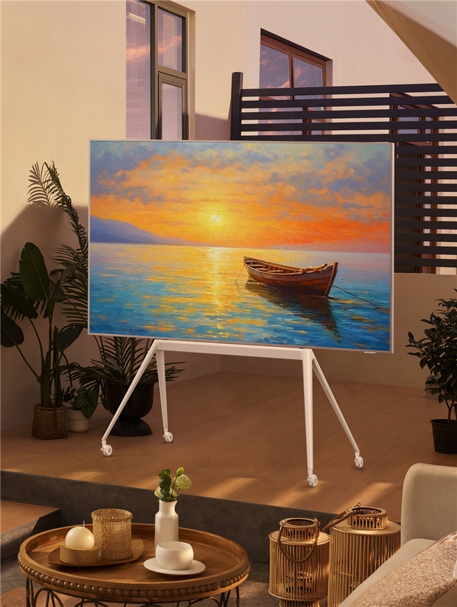 除了颜值与画质的双重惊喜,A400 Pro最让人惊艳的,还有它打破空间束缚的自由性。它一改传统壁纸电视固定不动的弊端,支持挂装、座装、落地装三种安装方式,其中落地装搭配的独家灵动落地架堪称“点睛之笔”——画架式底座加上可拆卸的360°灵活万向轮,轻轻一推,电视就能在家中“自由游走”:客厅观影、卧室放松、餐边听剧,甚至搬到花园享受户外影视,观影场景完全由自己掌控。操控体验也同样自由,灵控系统3.0实现无开机广告,一键切换电视/艺术模式,还支持海量APP下载,用起来和手机一样顺手。