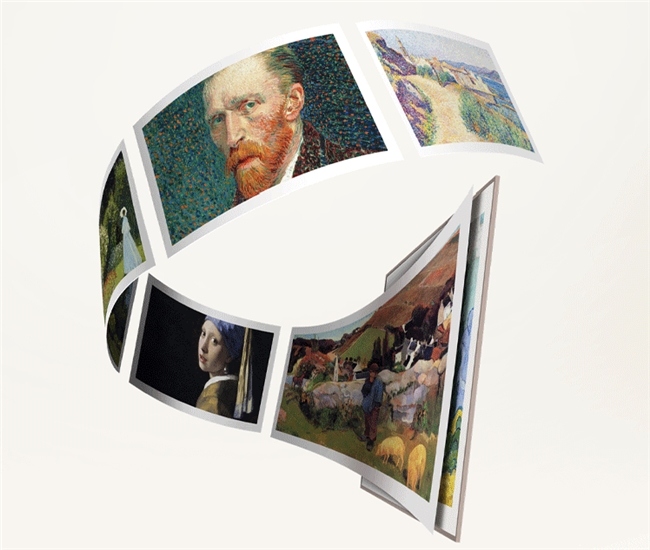 更让人惊喜的是,A400 Pro能直接把家打造成私人美术馆。它的艺术模式里收录了上百幅世界经典名作,涵盖馆藏珍品、印象派大师作品、抽象几何装饰艺术以及自然风光等多种类型,电视待机时,这些名作可以轮番展示,再搭配动态名画和音乐氛围屏功能,整个家都被艺术氛围包裹着,氛围感爆棚。如果想追求个性化,还能通过AI艺术功能,3秒生成专属画作,轻松满足个性化展示的需求。