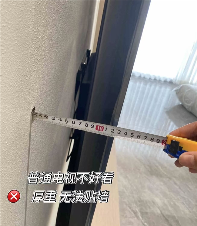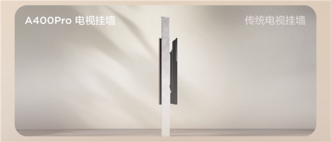 A400 Pro最直观的优势在于其极致的美学设计。过去传统电视往往给人笨重、呆板的印象,即使是最新款的液晶电视,其厚度也大多在60mm以上,背板凸起明显,安装后与墙面之间存在较大缝隙,不仅影响美观,还容易积攒灰尘,对于追求个性化的当代年轻人来说,即便画质不错,也会“看不下去”。