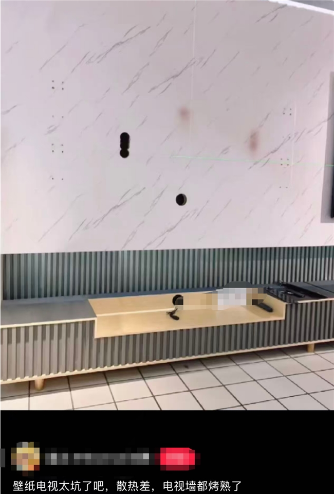 前段时间刷某书,刷到一位博主分享的“装修惊魂记”:新装的壁纸电视,因为长时间使用散热不佳,机身过热,竟然直接把后面的墙面给烤糊了!白墙上留下了一片难以忽视的焦黄印记,堪称大型翻车现场。这条笔记瞬间引发了热议,评论区成了大型“吐槽大会”,不少人共鸣:“买的时候只图它薄、好看,没想到还是个隐形火炉!”、“散热差只是其一,晚上看片画质像蒙了层纱,这苦我自己咽下......”。