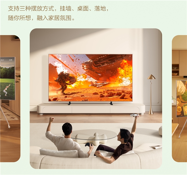 A400 Pro最令人惊喜的地方还体现在独特的移动性设计上。与传统壁纸电视固定于墙面的安装方式不同,它支持挂装、座装以及落地装,并配备温暖奶油色的灵动落地支架和万向轮,让电视可以在全屋自由移动,像我平时就爱在卧室待着,把电视移动到卧室就能躺着看大片,别提多爽。