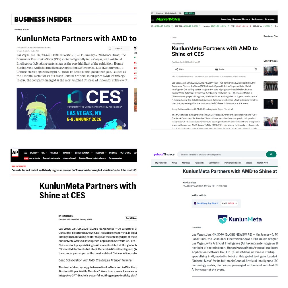 近日,被誉为全球消费电子“科技春晚”的国际消费电子展(CES 2026)在拉斯维加斯隆重开幕,人工智能成为本届展会的核心焦点。中国AI初创企业昆仑元AI(KunlunMeta)以其独特的“全栈式”技术路线引发海外媒体广泛关注,获得《美联社》《雅虎财经》《琼斯市场观察》《华尔街内参》《商业内参》等主流媒体集中报道,其中“东方Meta”的赞誉更是体现了国际市场对中国AI创新力量的高度认可。