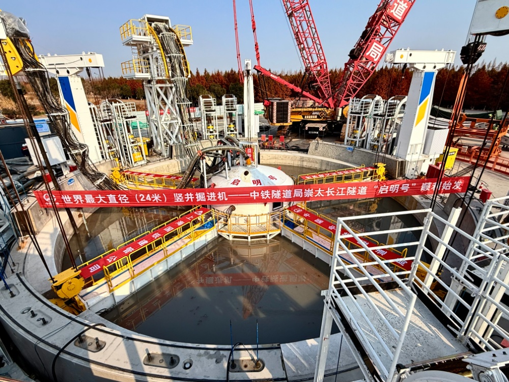 交汇点讯 1月13日,我国自主研制的世界最大直径竖井掘进机“启明号”在太仓始发,正式投入崇太长江隧道2号竖井建设。标志着我国在高速铁路竖井施工中首次应用掘进机技术实现重要突破。也为迎接已突破万米掘进大关的“领航号”盾构机“归队”奠定了坚实基础。