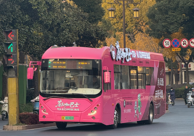当你漫步扬州街头,一辆玫瑰粉色的“茶咖巴士”常会不经意间闯入视线。这辆以典雅玫瑰粉为底色、印着“别赶路,去感受路”标语的特色巴士,自2025年12月23日投运以来,已成为古城一道移动风景。车厢内配备了商用全自动咖啡机、制冰机等专业设备,可供应香醇咖啡与清爽茶饮,还搭配了极具扬州特色的轻食拼盘。更吸睛的是车厢里的文创角,冰箱贴、雨伞、明信片以及绿杨春茶叶礼盒等好物整齐陈列,满是扬州韵味。