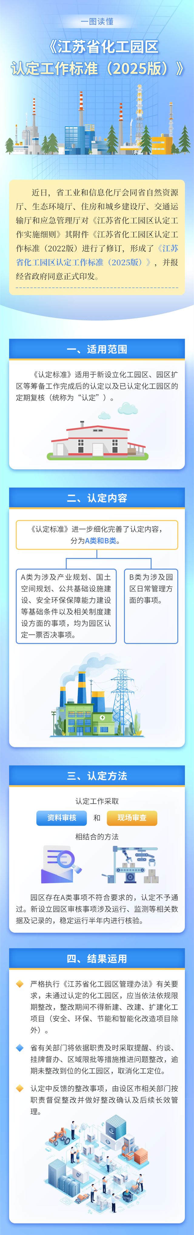 记者从江苏省工信厅了解到,该厅会同省自然资源厅、省生态环境厅、省住房和城乡建设厅、省交通运输厅、省应急管理厅联合对《江苏省化工园区认定工作实施细则》进行修订,形成《江苏省化工园区认定工作标准(2025版)》,经江苏省政府同意后正式印发。