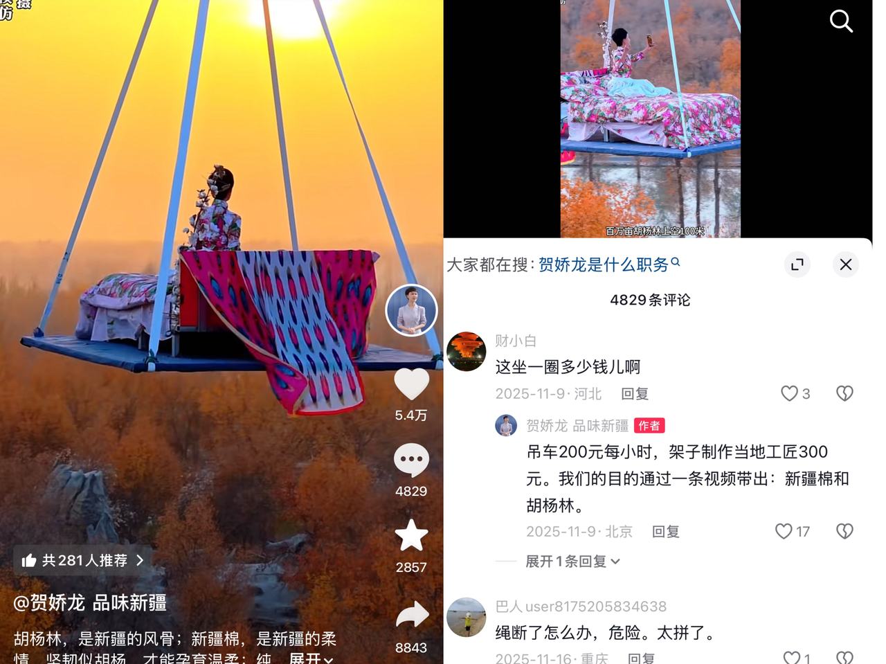 很多人这才发现,就在事故发生前几天,贺娇龙还专程回到家乡“天马之乡”昭苏,为第三届伊犁昭苏天马冰雪旅游季拍摄宣传视频。