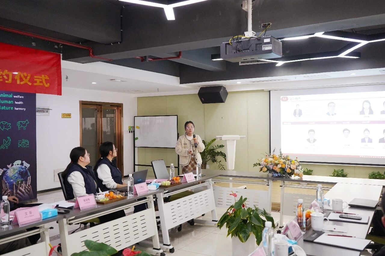 兴嘉生物总经理助理方晶子作为企业方项目负责人发言,指出兴嘉生物致力于以微矿智慧科技助力产业提质增效。动科院在动物营养与育种领域具有深厚科研积淀,与企业发展需求高度契合。为确保产学研融合目标实现,公司将全力投入资源,以高效协同推动项目扎实落地,推动前沿成果向现实生产力转化。