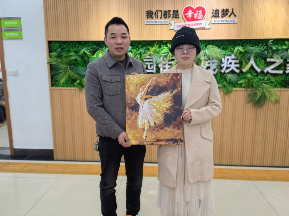 “永州的橙子又大又甜,吃在嘴里,暖在心里!”熊小兵咬下第一口橙子,脸上漾起幸福的笑容,“这份跨城的心意,让我们心里热乎乎的。”爱心从来不是单向的奔赴,感恩也在双向传递。捐赠仪式后,残疾人之家的学员们依次上前,将精心制作的文创产品送到蒋国栋和球迷会代表手中。手工编织的香囊、寄托美好期许的画作、精巧别致的泥塑摆件……每一件作品都凝聚着大家的心血与巧思。蒋国栋捧着学员朱婕专门为他绘制的芭蕾舞者油画反复端详,爱不释手:“这些作品太精美了,这是我收到的最珍贵的回赠!”