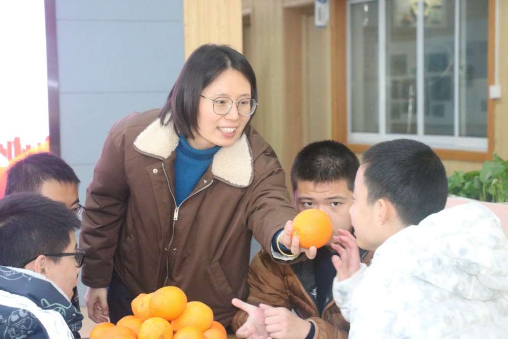 步入蠡园街道残疾人之家,温馨热闹的气息扑面而来:装满橙子的麻袋整齐码放在活动室里,虽没有精致的包装,但藏着最质朴纯粹的心意。残疾人朋友们围坐在长桌旁,手捧金黄的橙子细细品尝,清甜的汁水在舌尖四溢;一旁的置物桌上,文创产品错落摆放,手工缝制的香囊、栩栩如生的泥塑相映成趣。清甜的橙香裹挟着浓浓的温情,在冬日的时光里静静流淌。