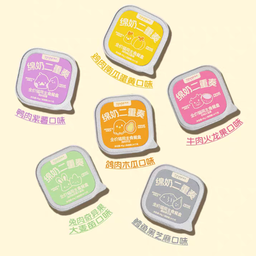 “绵奶二重奏”最直观的创新在于其独特的双层营养质地。打开餐盒,上层是如慕斯般细腻丝滑的进口珍稀绵羊奶,下层则是扎实的天然果蔬肉层。这种设计并非仅仅为了美观,而是深度契合了猫咪的进食天性。