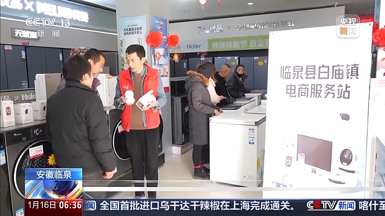 除了线下商店销售升温,线上销售也同样活跃。目前,临泉县406个行政村已实现电商全覆盖,依托“县乡村”当日达物流,各种家电产品当天就能送村入户。