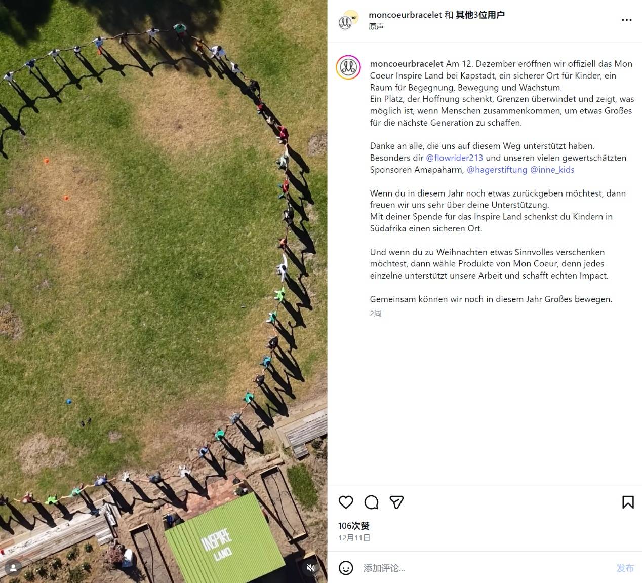 Inspire Land的落地得益于多方的持续投入与协作,其中,德国高端儿童营养品牌 inne(中文名:因你)作为Mon Coeur的重要合作伙伴,为项目建设提供资金支持,并每日为每名儿童提供一顿健康餐食。在南非部分地区食物供应不足的背景下,这一持续性的支持被视为改善儿童日常生活的重要保障。