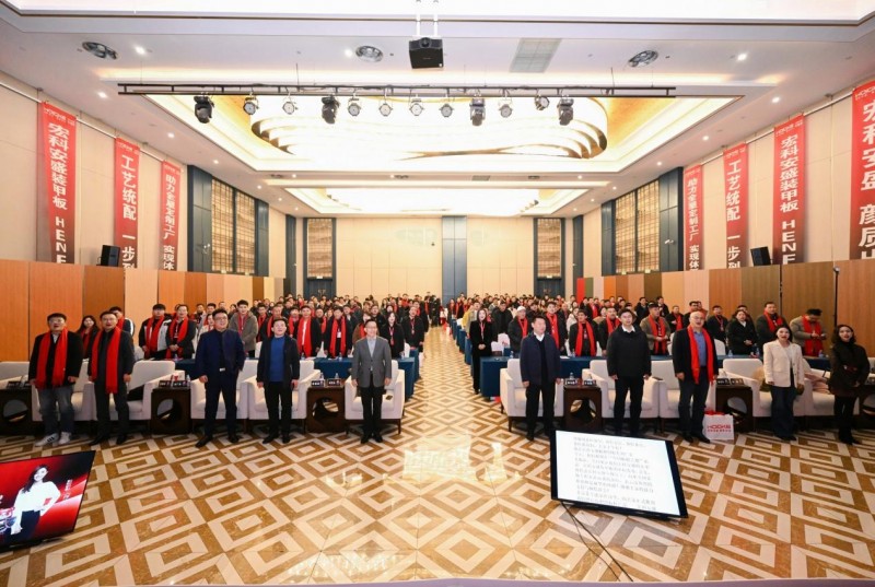 2026年1月12日,全屋定制行业发展营销峰会暨宏科安盛装甲板新品发布会在临沂蓝海大酒店隆重举行。市林业局党委书记、局长周茂永,兰山区常委副区长李兆国,兰山区产业链专班、区工信局副局长李宾宾,兰山区汪沟镇镇长于清疆等领导莅临现场,共同见证新品发布。政企携手之下,宏科安盛正式推出潜心研发的标杆产品——装甲板,以“HENF级 10000张0变形”为核心承诺,凭借六大核心卖点直面市场痛点,四大合作优势全方位赋能合作伙伴,引领定制家居板材行业迈向新阶段。