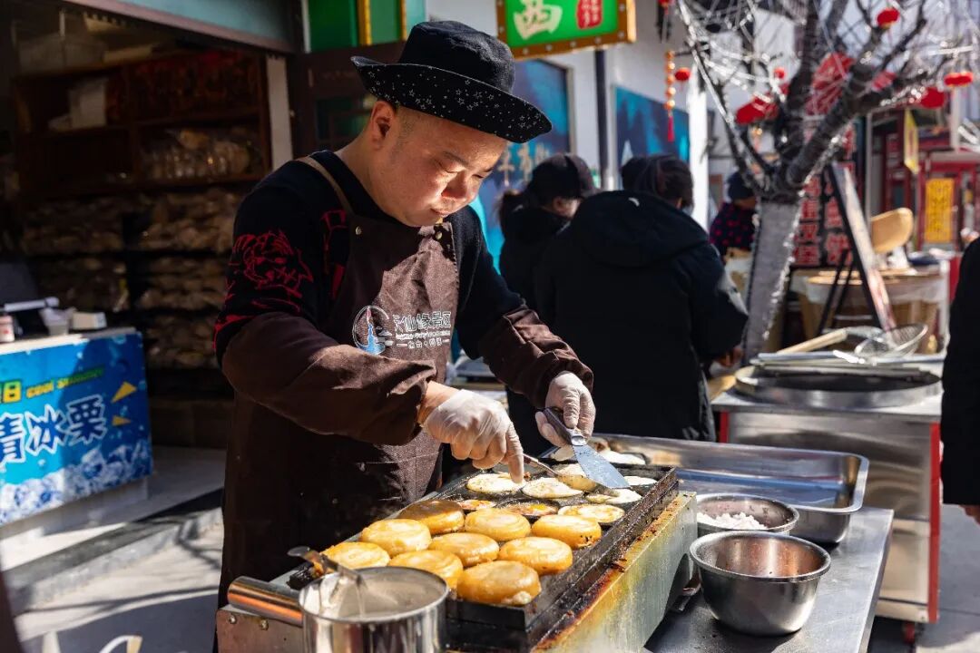 谁能拒绝西溪街头的金黄诱惑?外婆的油饼店,那金黄酥脆的油饼一口咬下,咔嚓作响,是碳水最直接的快乐。还有臭干子、油墩子,撒上灵魂调料,表皮金黄酥脆,热量与快乐双在线,一口咬下,幸福拉满。