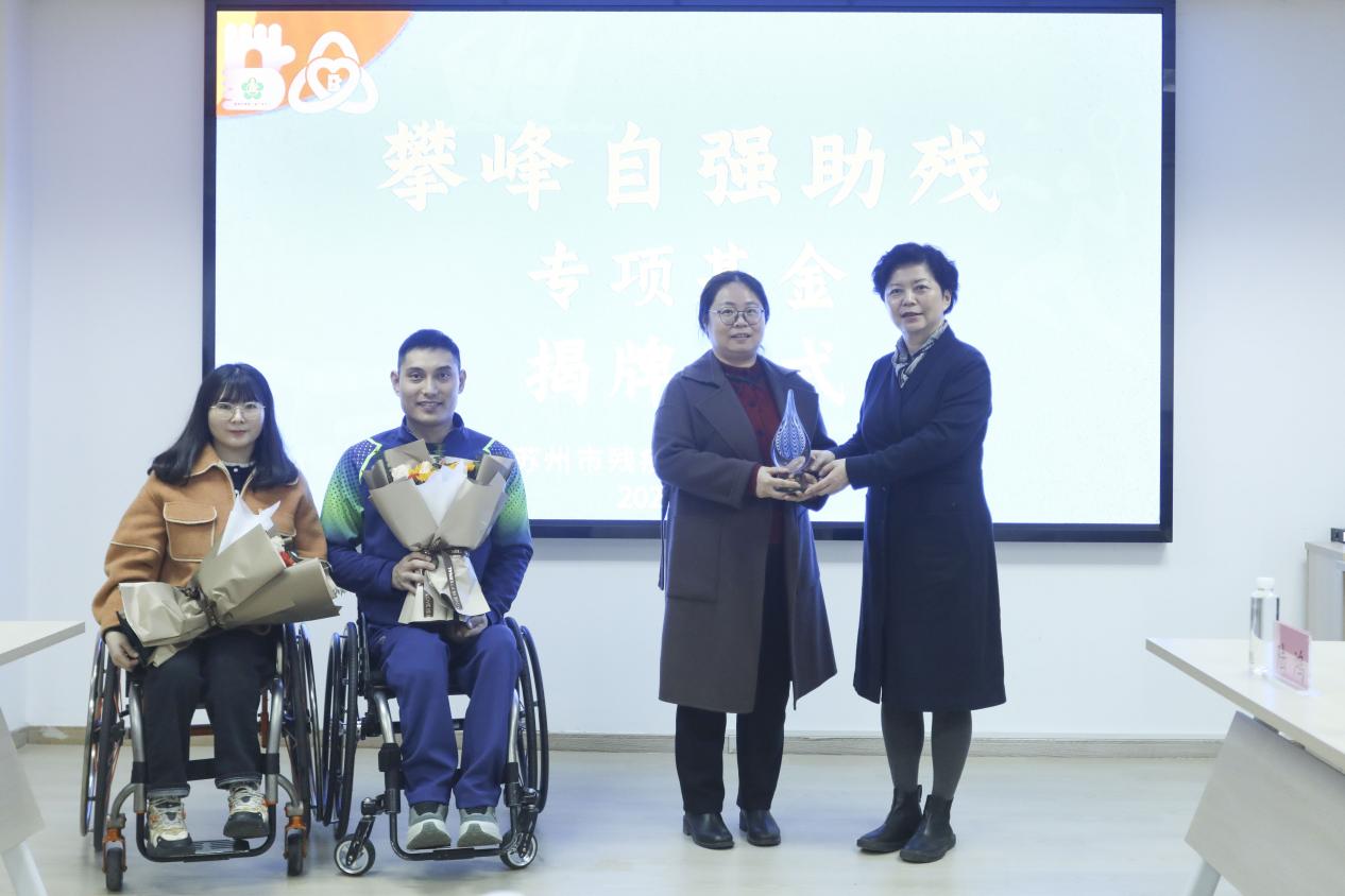 1月15日下午,“攀峰自强”助残专项基金揭牌仪式在市残联阳光大厦苏州市助残社会组织孵化园圆满举行。残奥冠军冯攀峰夫妇携手昆山沪光汽车电器股份有限公司慷慨捐资10万元,共同发起成立助残专项基金。残奥精神引航,爱心企业聚力,为苏州残疾人事业高质量发展注入强劲公益力量。