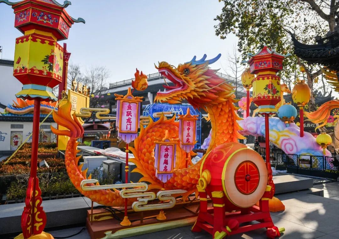 以“金榜题名·科举中国年”为主题,设计“金榜题名”“龙马精神”系列灯组,展现读书人的年节情怀。