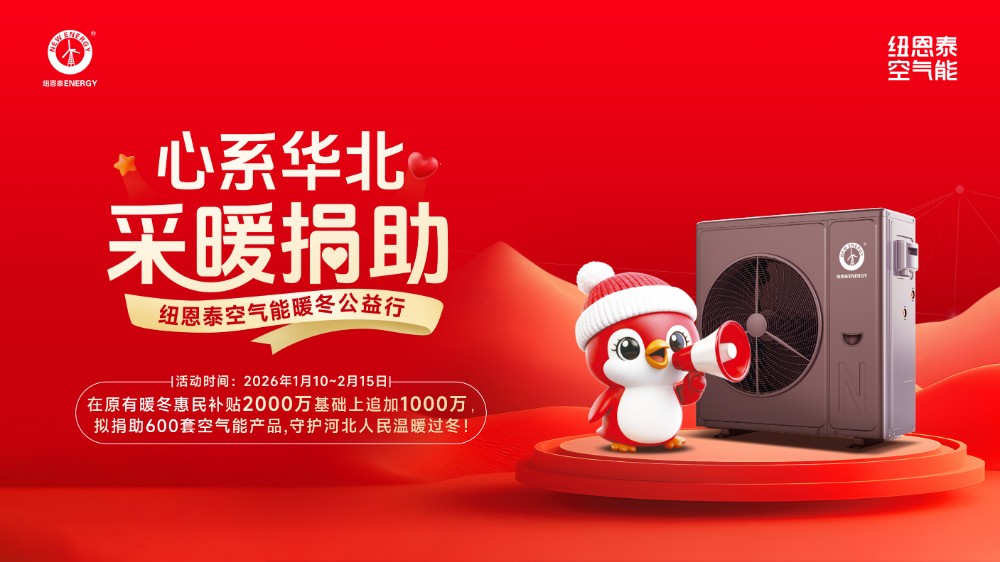 从即日起至2月15日,纽恩泰在原有2000万元暖冬惠民补贴基础上,追加1000万元专项投入,捐赠600套总价值1000万元的空气能采暖设备,定向帮扶河北困难家庭。该设备通过搬运空气中的免费热能实现采暖,运行成本比燃气节省一半,切实解决困难家庭“用不起暖”的难题。