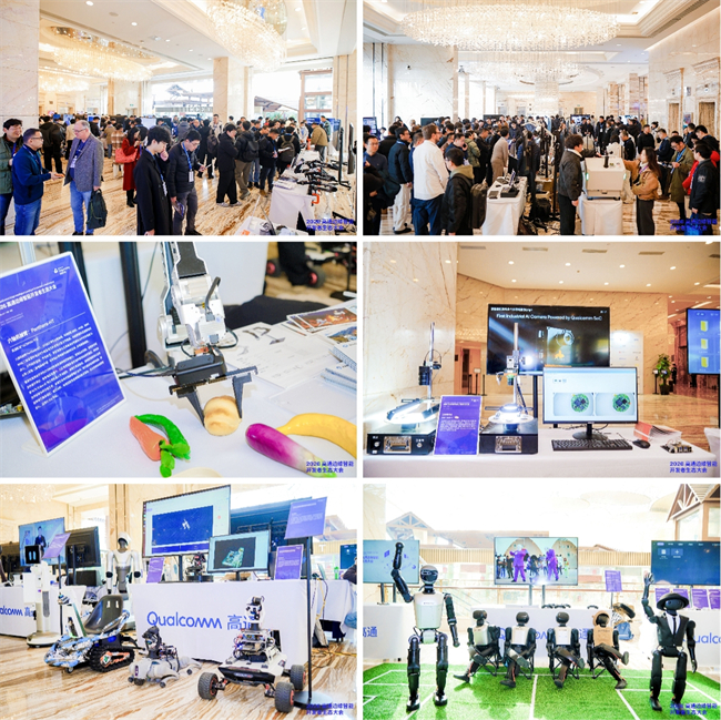 作为大会的亮点环节,特设主题展区则集中呈现丰富的生态协同创新成果。展区汇集80余项基于高通平台的边缘智能展品,包括人形、四足、轮式等各形态机器人,以及应用于智慧交通、智能安防、商业零售、家庭陪护等多元场景的智能终端,涵盖从个人创作、高校项目到企业原型与量产产品的完整创新链条。