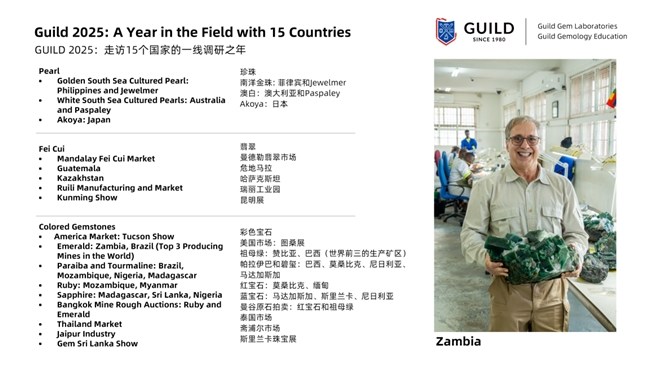 在GALA盛典上,作为目前全球最活跃的两位实地宝石学家,吉尔德教育总裁Andrew Lucas与吉尔德宝石实验室总裁刘丽红代表宝石学家团队分享了2025年考察过十五个国家和地区后,覆盖珍珠与彩色宝石等产业链的一手资讯: