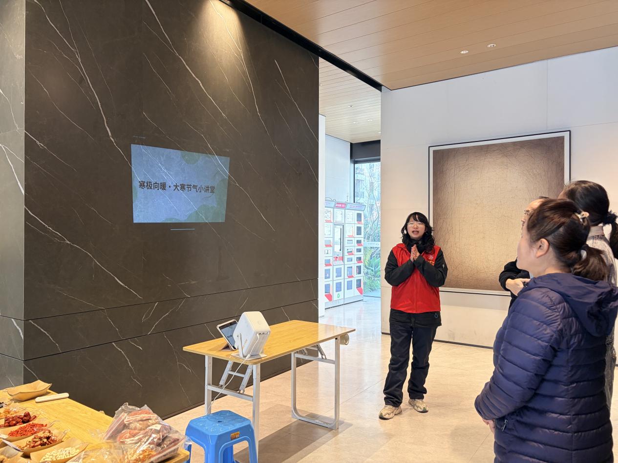 活动伊始,“大寒节气小讲堂”拉开序幕。社区志愿者围绕二十四节气中“大寒”的由来与特点进行简要介绍,结合气候变化和“数九寒天”的传统说法,引导居民了解节气背后所蕴含的生活智慧。同时,从冬季饮食起居角度出发,对大寒时节的养生要点进行讲解,帮助居民在日常生活中更好地顺应季节变化。