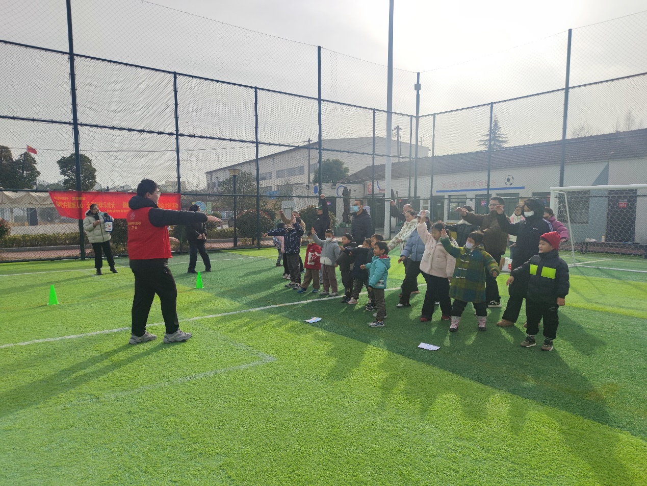 活动在轻松愉快的亲子热身操中拉开序幕。在社区志愿者的带领下,亲子家庭共同参与热身活动,通过简单有趣的动作舒展身体、活跃气氛,为后续运动项目做好准备。热身过程中,家长与孩子积极互动,现场气氛逐渐升温。