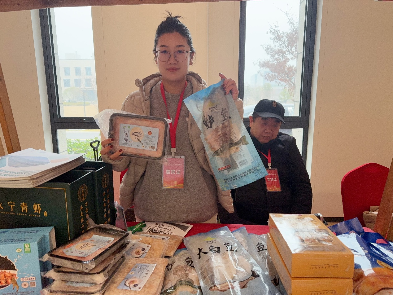在众多展品中,永宁青虾成为全场焦点。水箱中,青虾活蹦乱跳,尽显新鲜活力;展位上一袋袋冷冻虾整齐摆放,方便市民按需选购。现场丽铭农庄负责人赵丽介绍,考虑到春节期间市民的储存需求,他们特别准备了冷冻青虾。这些冷冻虾采用零下48度液氮冷冻锁鲜技术,保质期长达6个月。食用时,只需快速解冻,再用开水白灼,口味与活虾无异。临近过年,正是青虾上市旺季,每日销量可达几千斤。冷冻虾以6两一盒包装,分为大、中、小三款,其中大虾售价68元一盒。除了青虾,鲈鱼、白鱼、盐水鸭等市民餐桌上的“常客”也纷纷亮相。