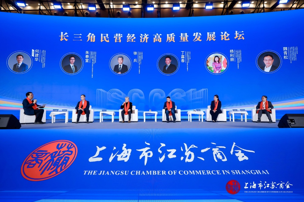 聚焦深度探讨和思维碰撞,大会特别设置“长三角民营经济高质量发展论坛”,由上海社会科学院研究员、原副院长,南通大学长三角现代化研究院院长、上海市江苏商会高级顾问何建华主持。上海市政协委员、上海市江苏商会执行会长、上海金之福养老服务(集团)有限公司董事长徐兵;上海市奉贤区政协委员、上海市江苏商会执行会长、上海益中亘泰(集团)股份有限公司党委书记、董事长,“医管家”创始人朱春堂;上海市人大代表、上海市江苏商会联席会长、上海嘉春装饰设计工程有限公司董事长丁嘉春;上海市普陀区政协委员、上海市江苏商会执行会长、上海朋利来餐饮管理有限公司董事长、小杨生煎创始人杨利朋;全国政协委员、享受国务院特殊津贴专家、最高人民法院特约监督员、上海市纽思达律师事务所主任魏青松5位企业家嘉宾从各自产业实践出发,围绕产业发展、区域协同等作分享和交流。
