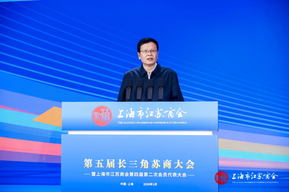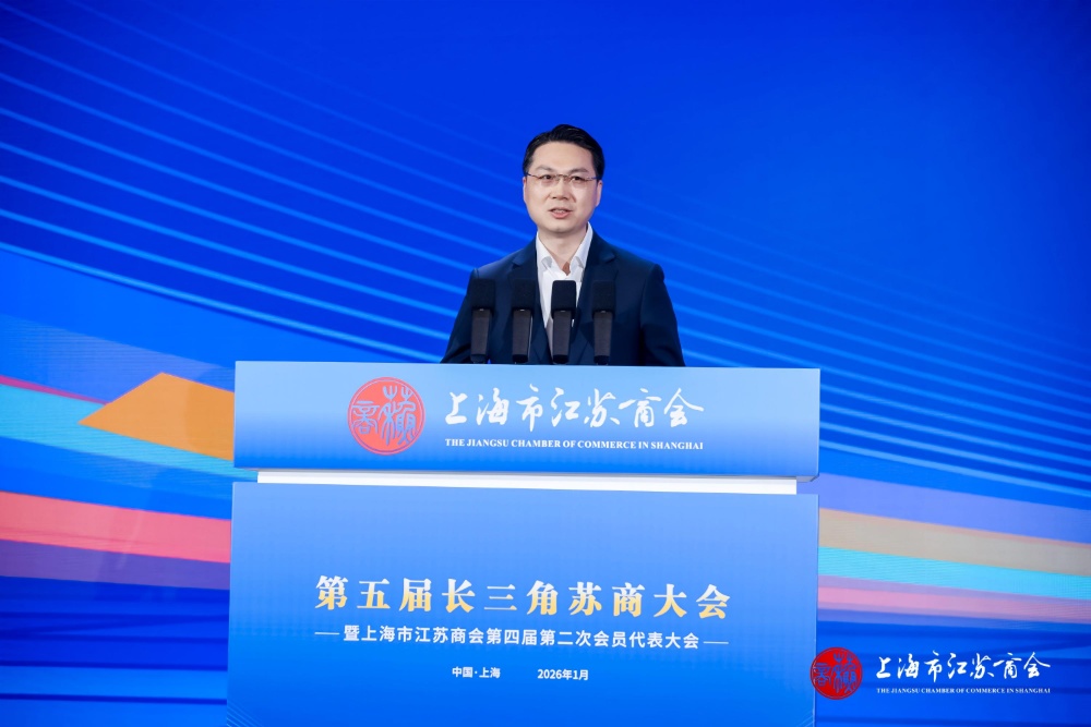 交汇点讯 1月17日,第五届长三角苏商大会暨上海市江苏商会第四届第二次会员代表大会在上海举行。大会以“十五五提质增效谋新篇,沿沪宁苏商协同创辉煌”为主题,旨在汇聚长三角苏商智慧与力量,共谋高质量发展新蓝图,开启区域协同奋进新篇章。