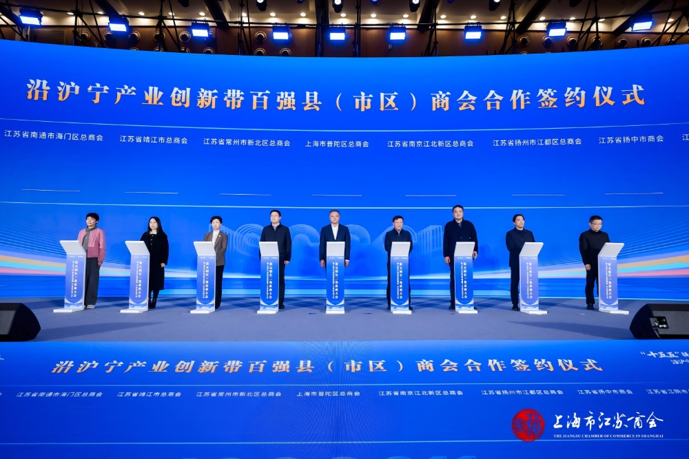 从宏伟蓝图到坚实足迹,关键在于行动与落实。大会现场,上海市普陀区工商联与江苏省南京市浦口区、常州市新北区、扬州市江都区等沿沪宁线八个县(市、区)工商联(商会)共同签署合作协议,共商常态化合作机制。同时,“沿沪宁协同创新中心-上海市江苏商会服务站”正式成立,将成为苏商深度参与产业创新带建设的一线服务枢纽。