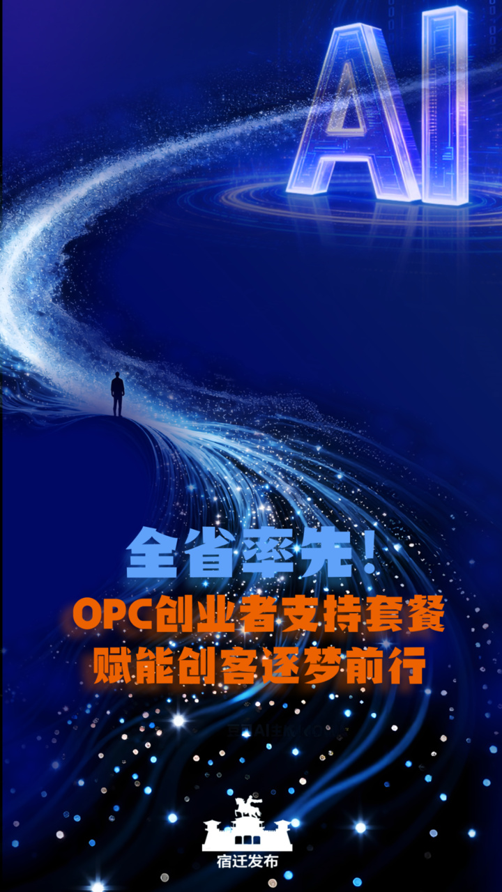 OPC,即人工智能技术赋能的一人公司,通俗讲就是“一个人+AI”即可组建公司,独立完成从设计、研发到市场、客服的全业务链路。宿迁市委副书记、市长刘浩此前现场研究推进相关工作,要求属地和部门强化全要素保障、全流程服务,建设OPC社区。