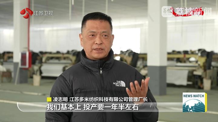 江苏多米纺织科技有限公司管理厂长凌志明说:“一般买地建造厂房,投产基本要一年半左右;旧厂房改造之后,速度提起来了,去年3月份过来的,这个月已经可以基本上投产了,产值一年在五亿元左右。”