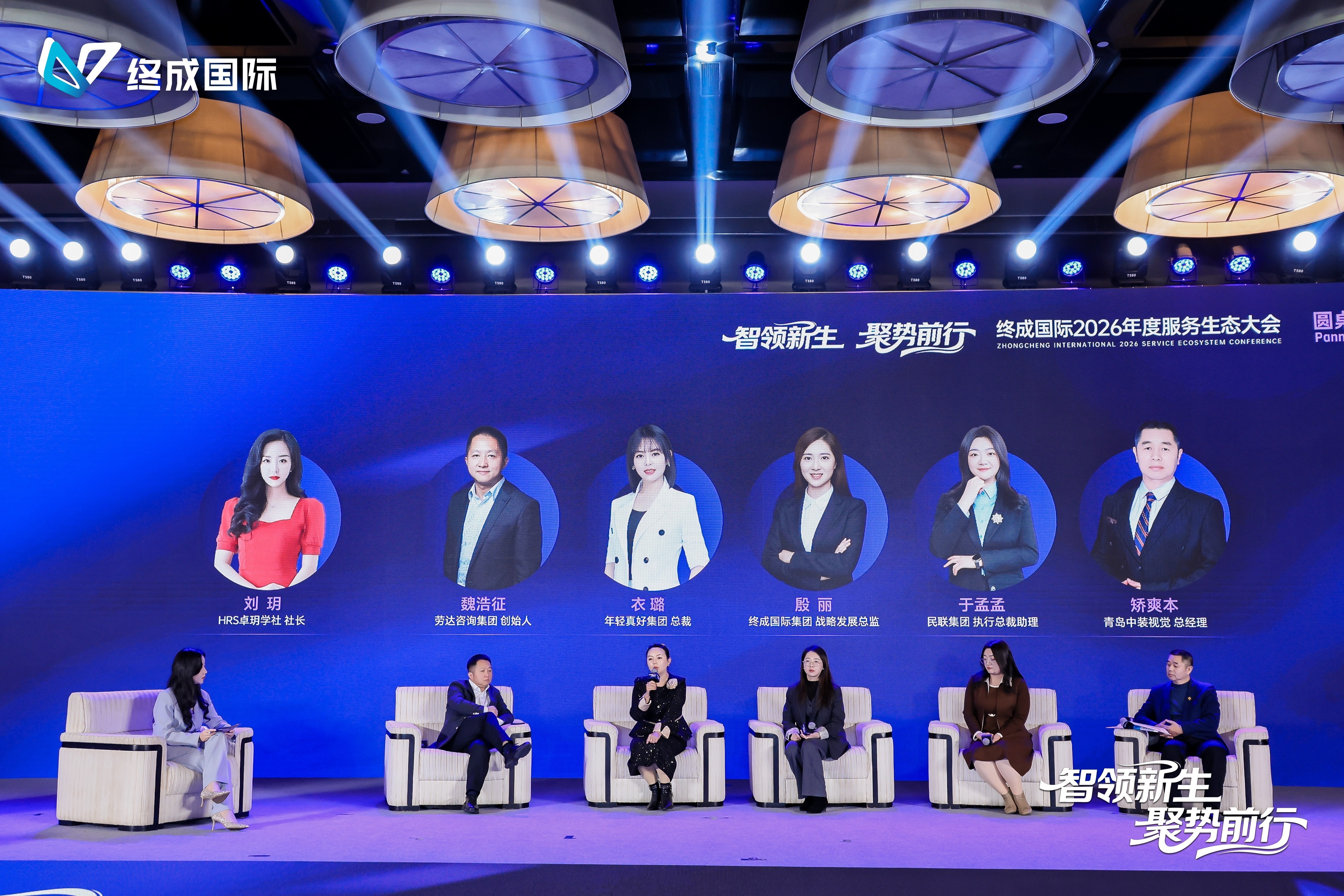 在随后的圆桌论坛环节,由HRS卓玥学社社长刘玥担任主持,特邀年轻真好集团总裁衣璐、劳达咨询集团创始人魏浩征、终成国际集团战略发展总监殷丽、瑞源民联集团执行总裁助理于孟孟、中装视觉总经理矫爽本五位行业领袖,围绕“AI驱动下的人效提升”与“全球化场景下的共生网络建设”展开了激烈的思想碰撞。