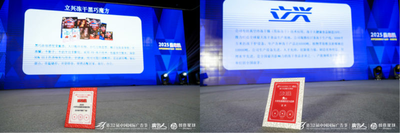 权威行业的奖项,是衡量品牌动作专业性与有效性的关键标尺。立兴冻干的整体焕新传播,在第三十二届中国国际广告节上获得了双重肯定:品牌本身荣获“大学生喜爱的活力品牌”称号,其核心产品冻干黑巧魔方也成功入选“大学生喜爱的青春好物”。