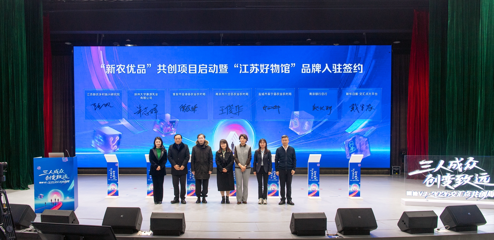 作为2026交汇点共创周主题沙龙的重磅环节,1月18日,“新农优品”共创项目启动暨“江苏好物馆”品牌入驻签约仪式在新华报业传媒集团举行。交汇点大平台携手南京农创园科创投资集团、江苏新农乡村振兴研究院,面向全省征集100个优质农产品品牌入驻,构建“媒体+科技+平台+产业”创新模式,为江苏乡村产业振兴探索新路径。