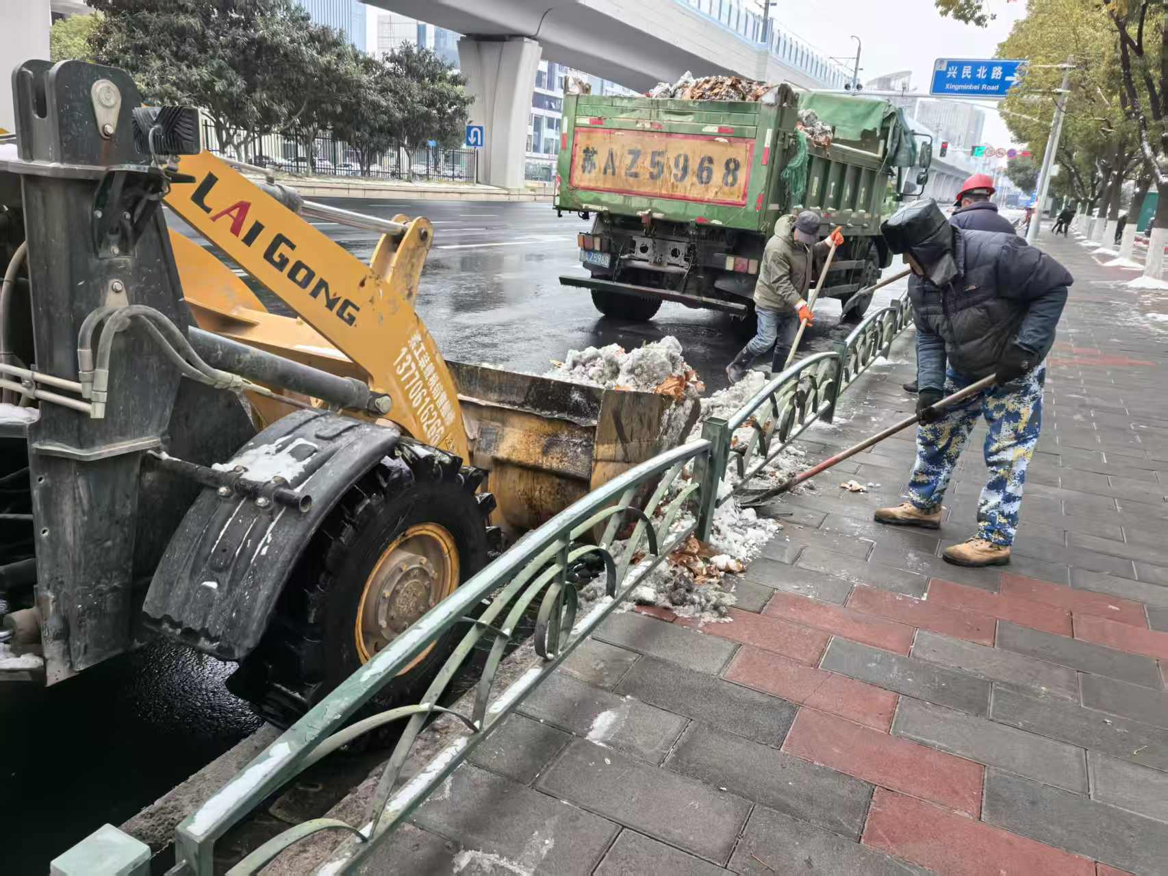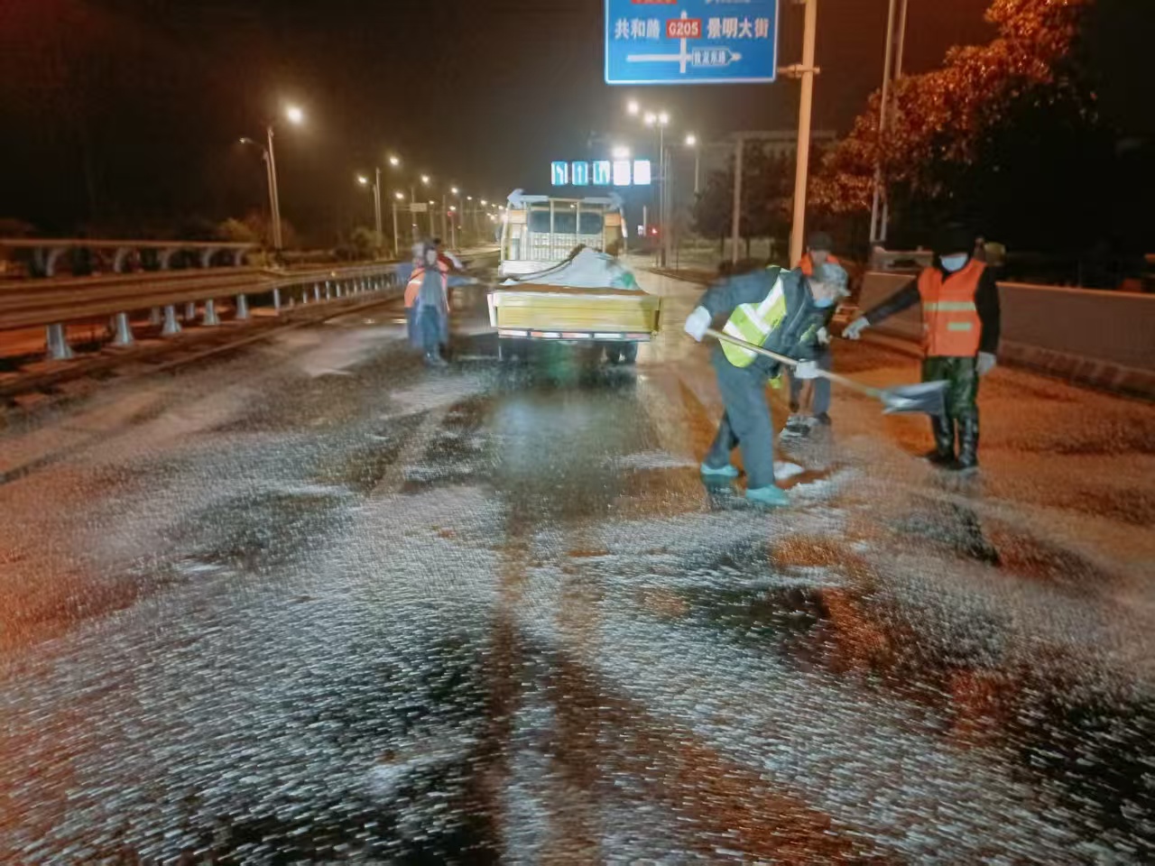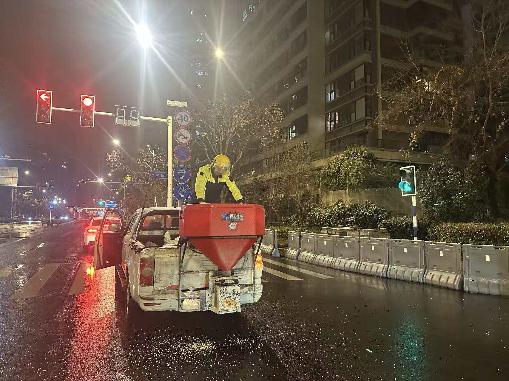 1月20 日凌晨 1 时,全区率先对主次干道、桥梁涵洞等易结冰重点路段及关键区域,精准开展融雪剂撒布作业,从源头防范道路结冰风险。凌晨 5 时,全区城管队员、环卫工人全员到岗,聚焦地铁站口、公交站台、校园周边、农贸市场等人流密集区域,以及城市主次干道,采取 “人工清扫 + 机械作业” 协同推进的模式,高效开展积雪清除工作。
