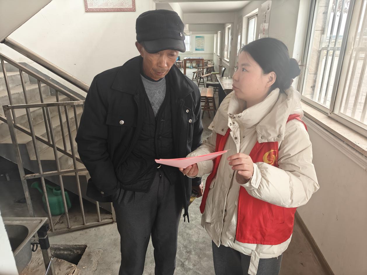 行动中,实践站先将《致全市老年朋友的一份居家安全提醒》通过各村网格群广泛转发,确保安全提示快速传达。随后,组织志愿者队伍深入路西、马埠屯等自然村,重点对高龄、独居及行动不便的老人开展“敲门入户”面对面宣传。