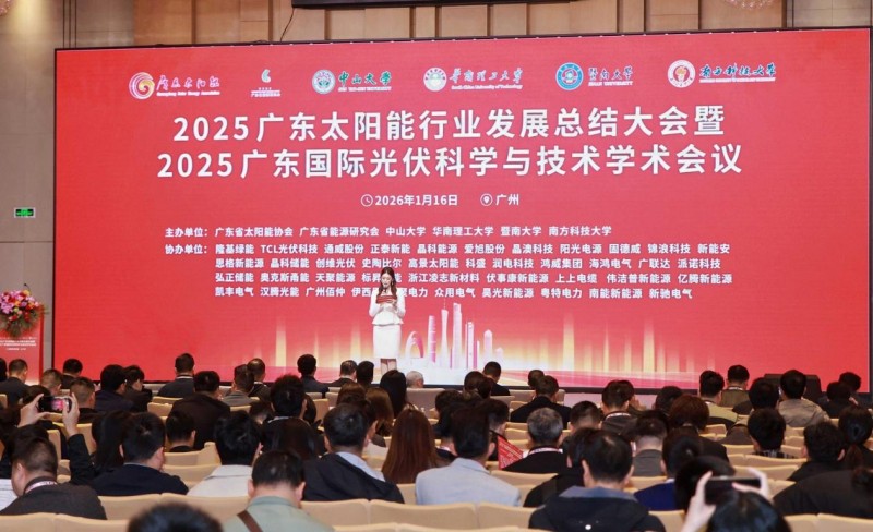 1月16日,由广东省太阳能协会、中科院广州能源所、暨南大学、中山大学、华南理工大学和南方科技大学联合主办的“2025广东省太阳能行业发展总结大会暨2025广东国际光伏科学与技术学术会议”在广州召开。