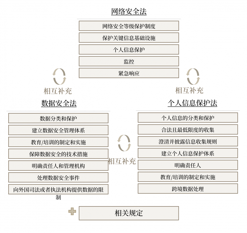 这三部法律并非孤立存在,而是在适用范围、监管对象与法律责任上相互衔接、彼此补充,形成了一套覆盖数据全生命周期、兼顾安全与发展的综合治理框架。随后,相关法律法规也在逐步公布并执行,进一步增强了法律的可操作性,标志着监管进入精准落地阶段。